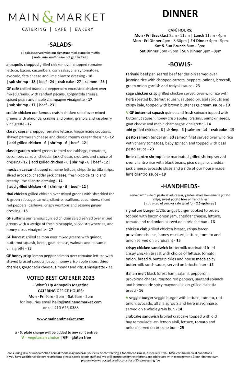 Whether you're nestled in for a cozy meal or planning a wedding catered by experts, Main & Market promises outstanding flavors and memorable experiences.